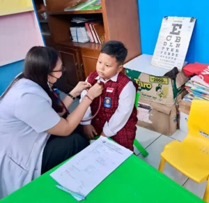 Dengan penuh rasa ingin tahu, para siswa mengikuti berbagai tahapan pemeriksaan, mulai dari pengukuran tinggi dan berat badan, perhitungan Indeks Massa Tubuh (IMT), hingga pemeriksaan mata, mulut, telinga, leher, dan dada. Sesekali terdengar tawa dan celoteh polos siswa saat berinteraksi dengan tim medis, mencairkan suasana dan menghilangkan rasa cemas.
