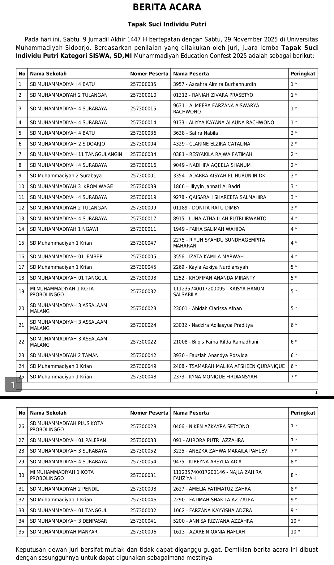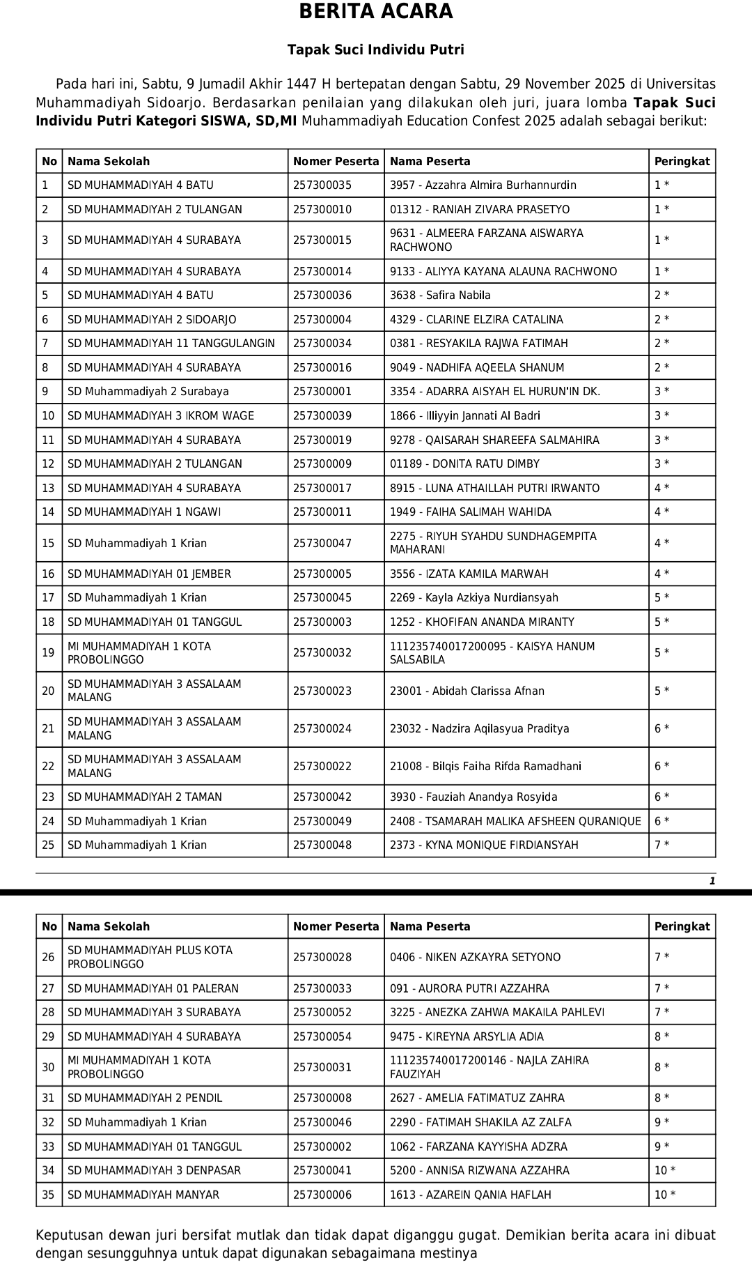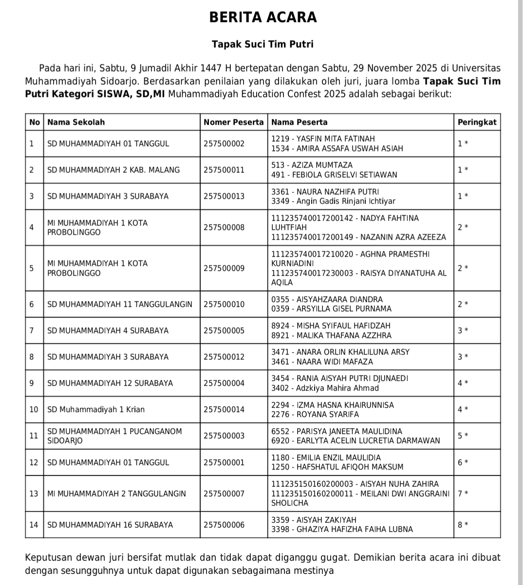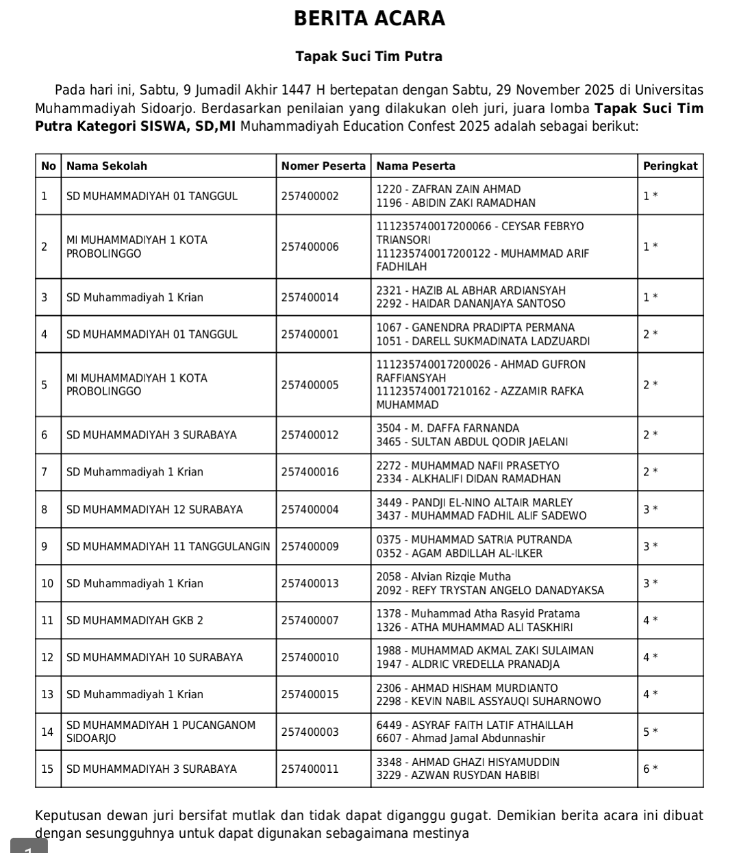 Cabang Tapak Suci pada ajang Muhammadiyah Education Conference Sport, Arts, and Festival (ME Confest) 2025) sukses digelar selama dua hari, Sabtu–Ahad (29–30/11/2025) di GOR SMA Muhammadiyah 2 (SMAMDA) Sidoarjo.