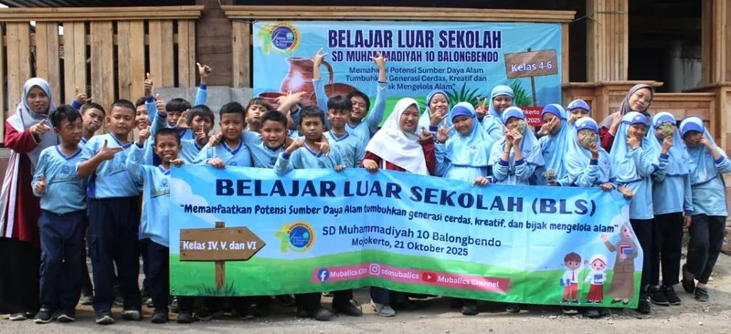 Jauh dari rutinitas buku pelajaran, siswa-siswi SD Muhammadiyah 10 Balongbendo (SD Mubaalics) Sidoarjo kelas 4-6 menjejakkan kaki di Kampung Cobek, Desa Mlaten, Kecamatan Puri, Kabupaten Mojokerto pada Selasa (21/10/2025).