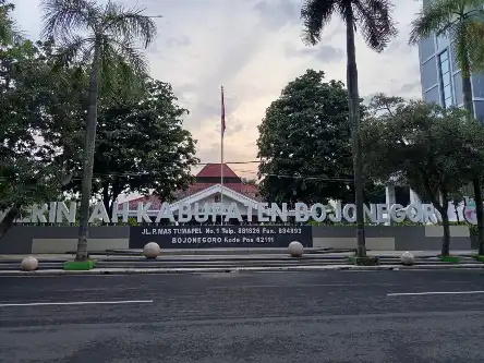 Saya terus memutari alun-alun. Di salah satu sudut terpampang tulisan besar “Alun-Alun Bojonegoro” di atas bangunan yang kemungkinan digunakan sebagai tempat tamu kehormatan. Di sisi lain berdiri Gedung Bakorwil. Sementara itu, di kawasan tenggara tampak kompleks kantor pemerintahan Kabupaten Bojonegoro yang menjulang sekitar sembilan hingga sepuluh lantai—megah dan dominan.