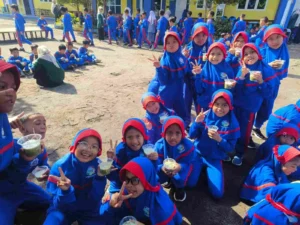 Setelah tubuh dibuat segar dan bugar, siswa menikmati sajian sederhana namun bergizi berupa bubur kacang hijau yang telah disiapkan oleh pihak sekolah.